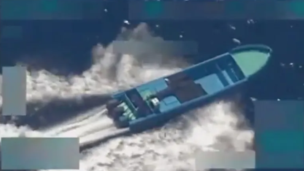 Video of the strike appears to show a long, blue speed boat moving through the water before being struck by US ordinance.